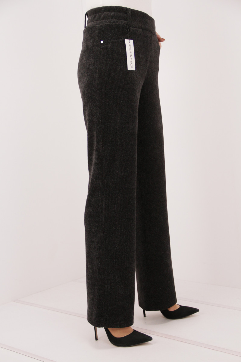 На моделі 50 розмір. Рекомендована ростовка: 46-52 розміри. Розміри українські. Cклад: 35% Бавовна, 50% Поліестер, 5% Спандекс, 5% Еластан, 5% Лайкра. Тканина: Стретч-вельвет. Колір : темно-сірий.