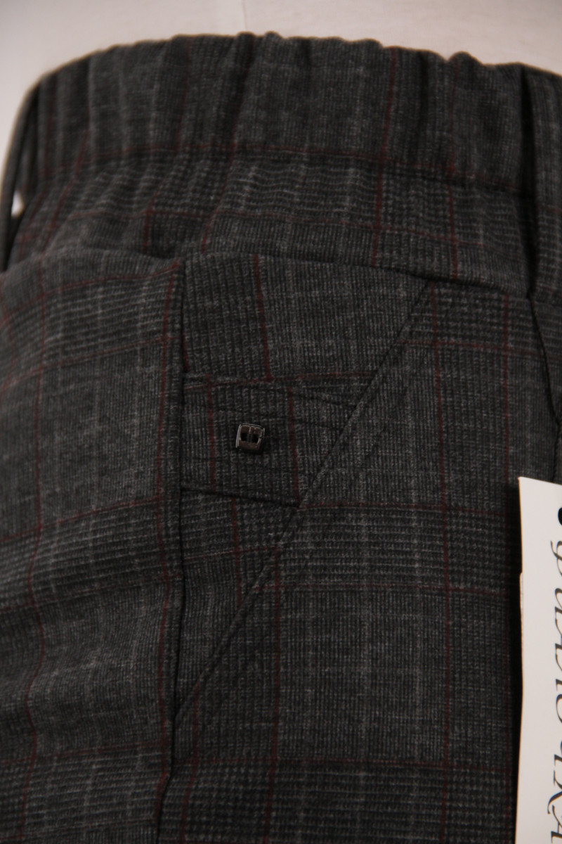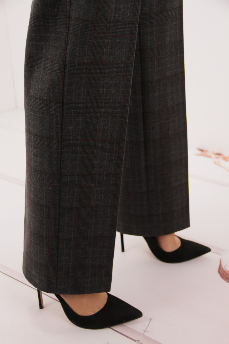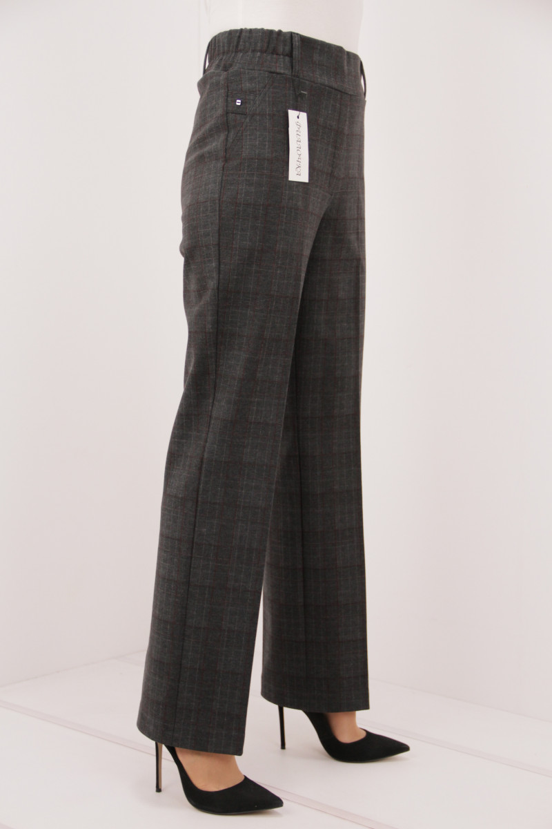 На моделі 50 розмір. Рекомендовані ростовки: 48-58 розміри ( 6 од.) та 46-58 розміри ( 7 од.). Розміри українські. Cклад: 35% Бавовна, 50% Поліестер, 5% Спандекс, 5% Еластан, 5% Лайкра. Тканина: Ніколь(кашемір на трикотажній основі)на флісі. Дизайн забарвлення : чорна з бордовим клітинка на темно-сірому фоні.