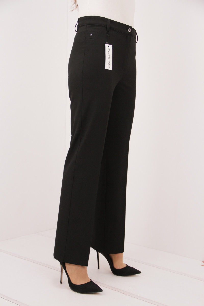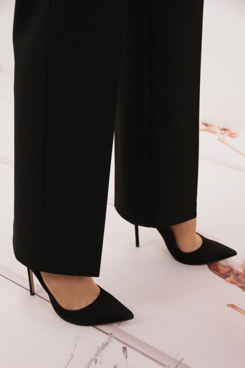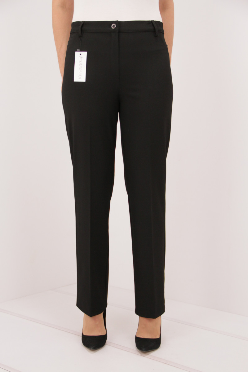 На моделі 48 розмір. Рекомендована ростовка: 46-58 розміри ( 7 од.). Розміри українські. Cклад: 67% Поліестер, 29% Віскоза, 4% Спандекс. Тканина: Турецький стретч-габардин. Колір: чорний.