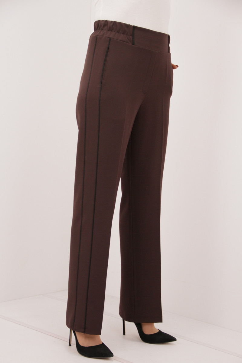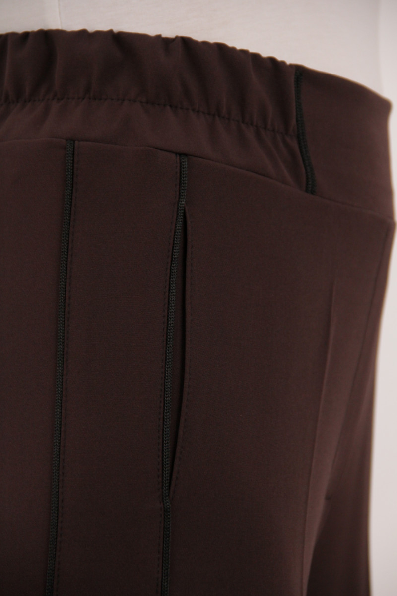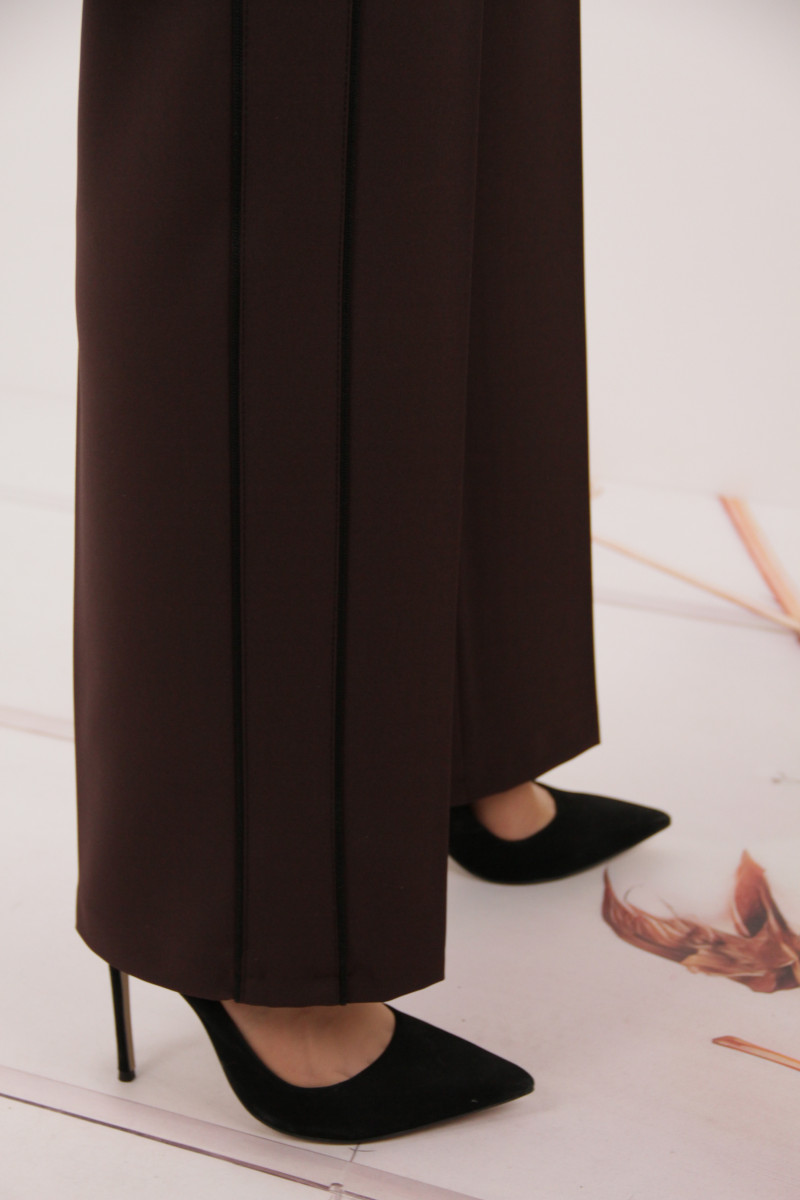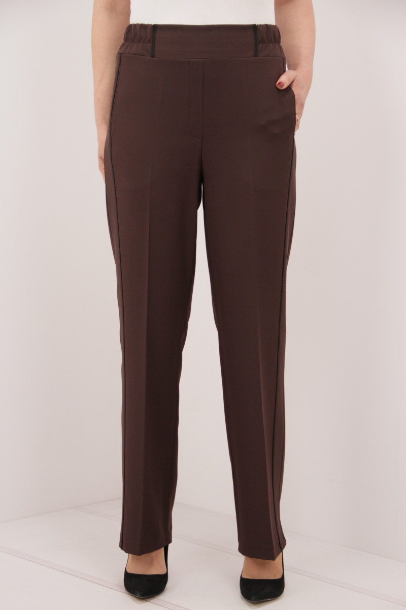 На моделі 50 розмір. Рекомендована ростовка: 46-54 розміри (5 од.) розміри. Розміри українські. Cклад: 67% Поліестер, 29% Віскоза, 4% Спандекс. Тканина: Барбара. Колір: темно-коричневий.