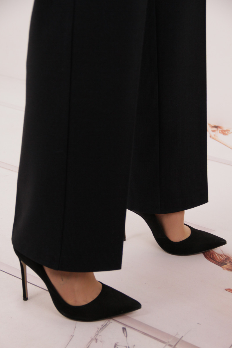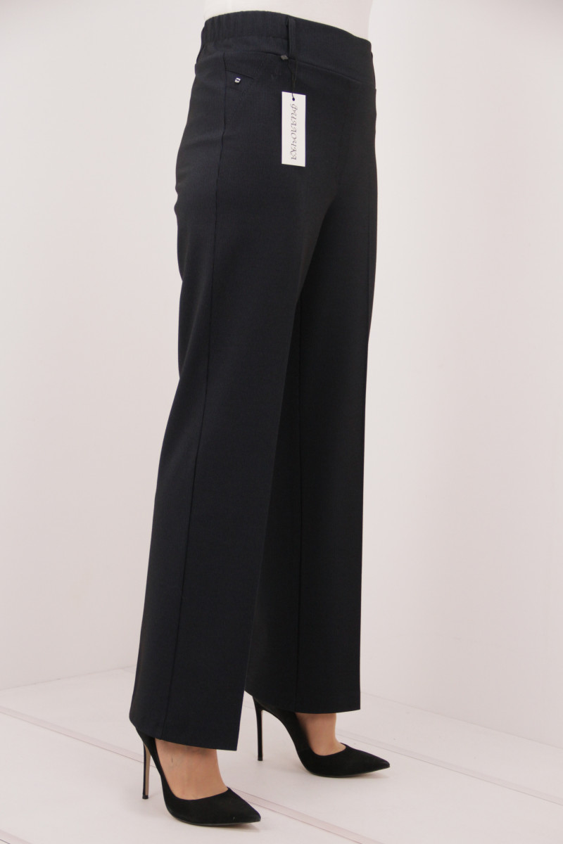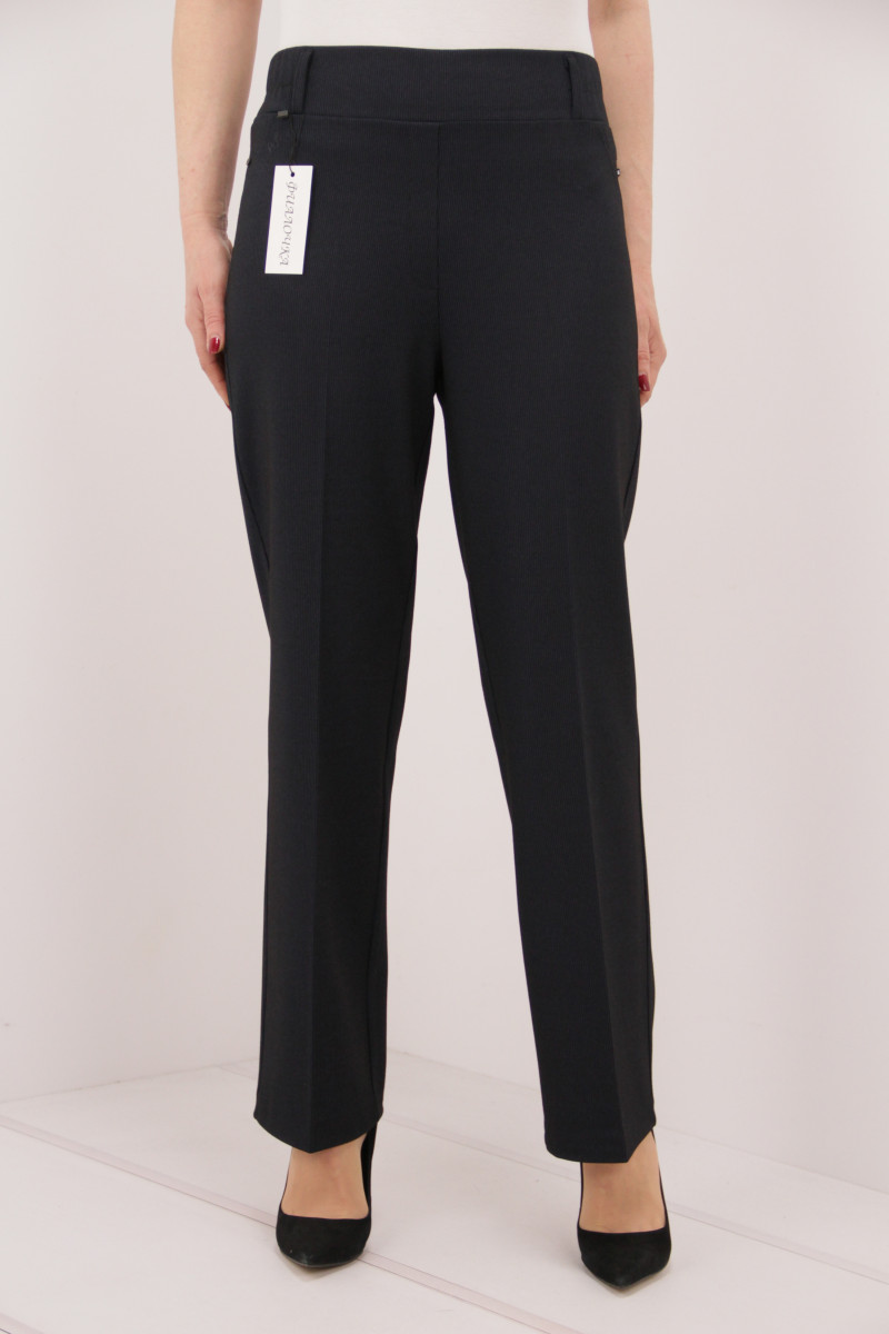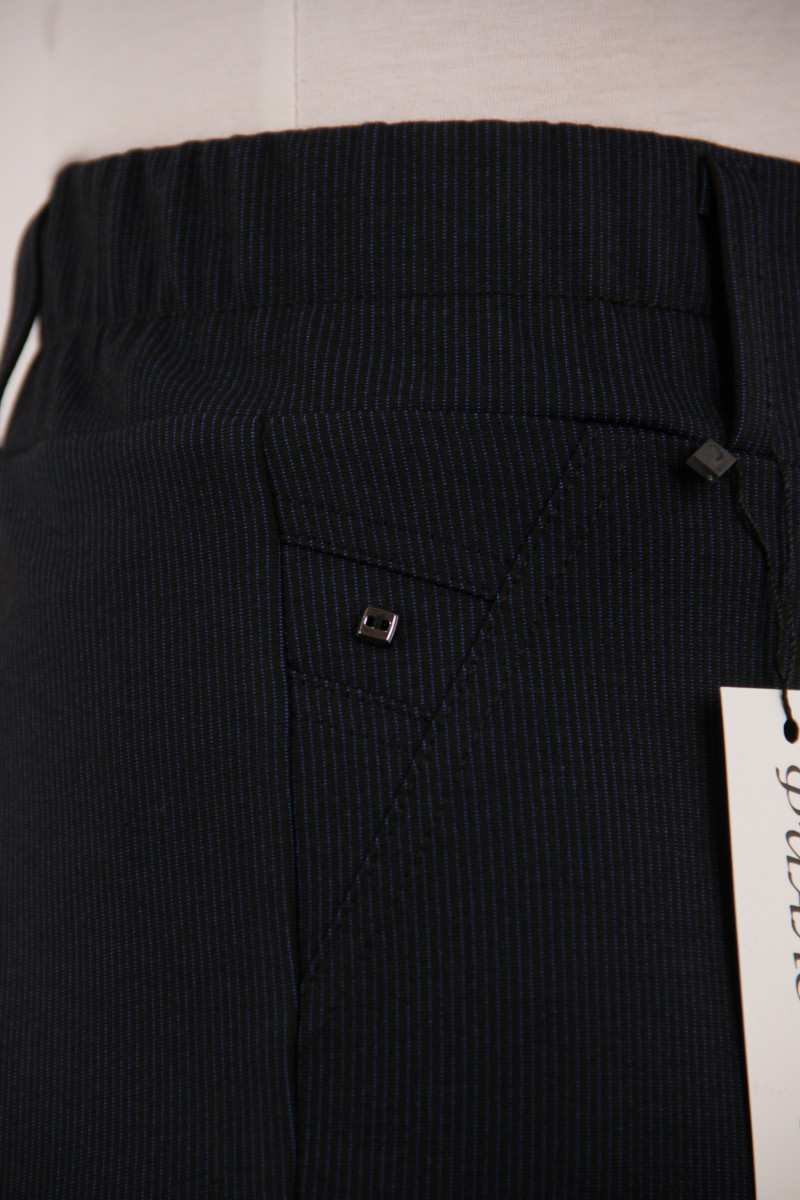 На моделі 50 розмір. Рекомендовані ростовки: 50-56 розміри (4 од.) та 48-56 розміри ( 5 од.). Розміри українські. Cклад: 35% Бавовна, 50% Поліестер, 5% Спандекс, 5% Еластан, 5% Лайкра. Тканина: Алекс принт. Дизайн забарвлення : дрібна темно-синя полоска на чорному фоні.